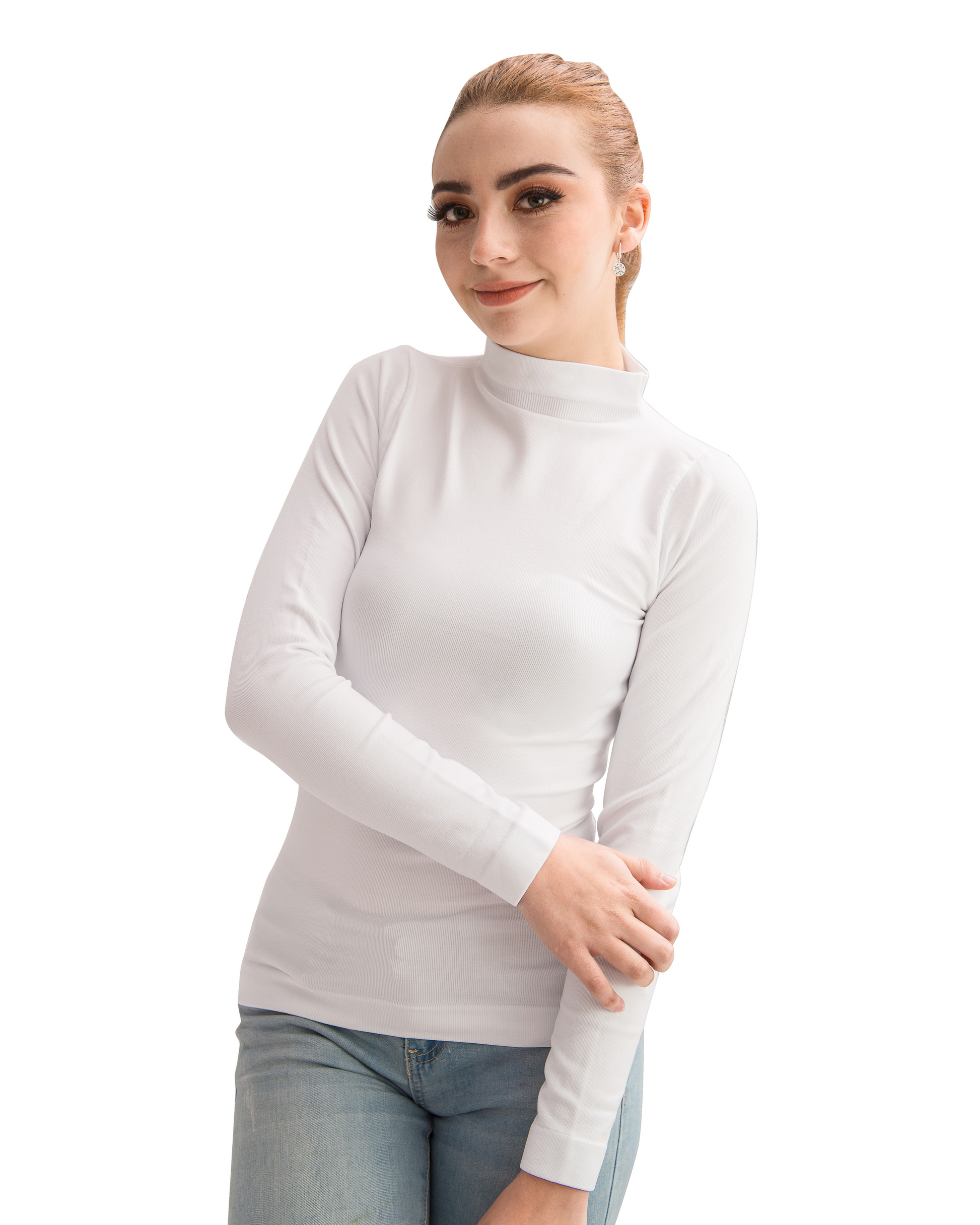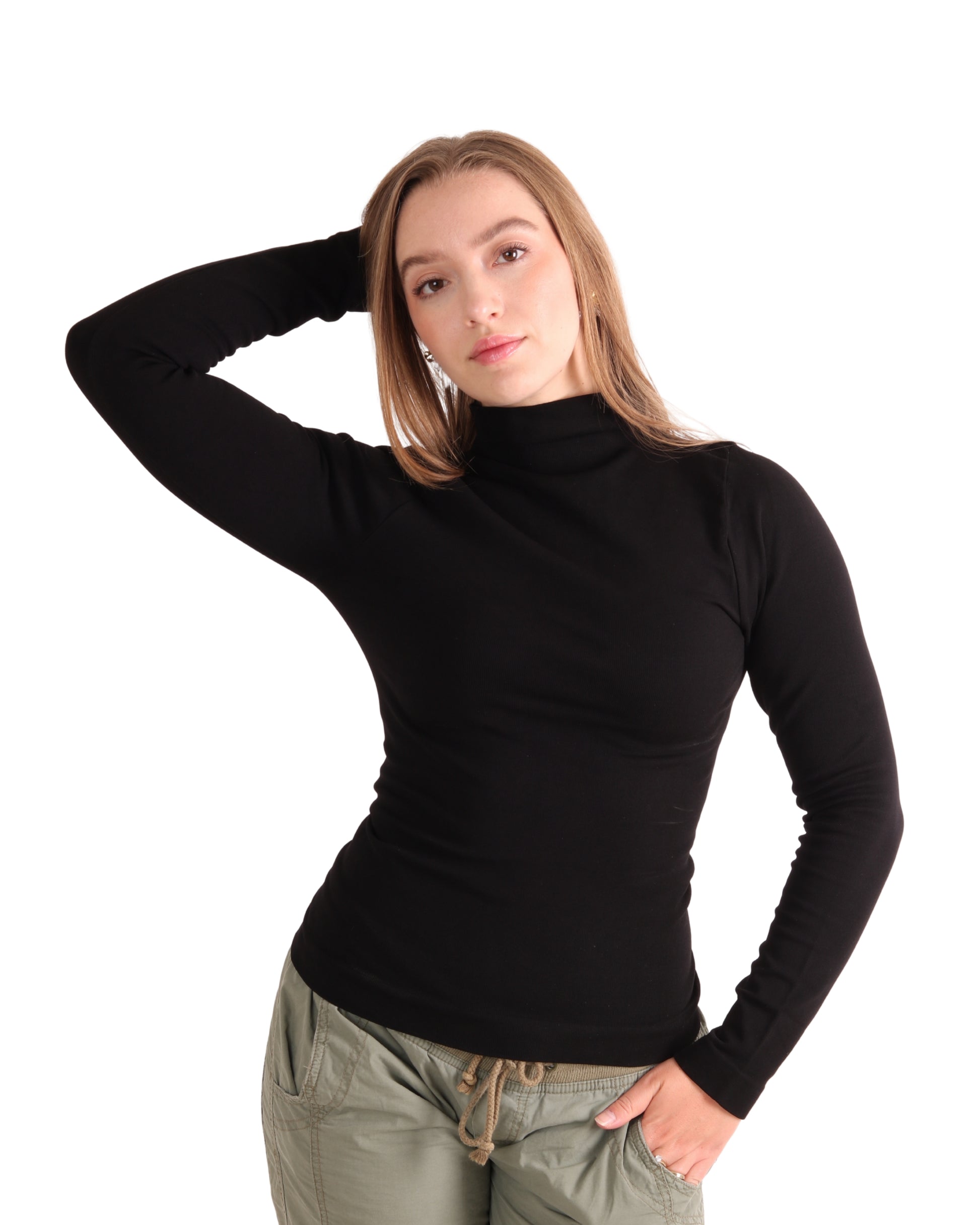 Blusa suave y ligera que se adapta cómodamente al cuerpo. Su cuello alto añade un toque sofisticado, perfecta como base en capas o sola, ideal para actividades diarias o momentos relajados.
