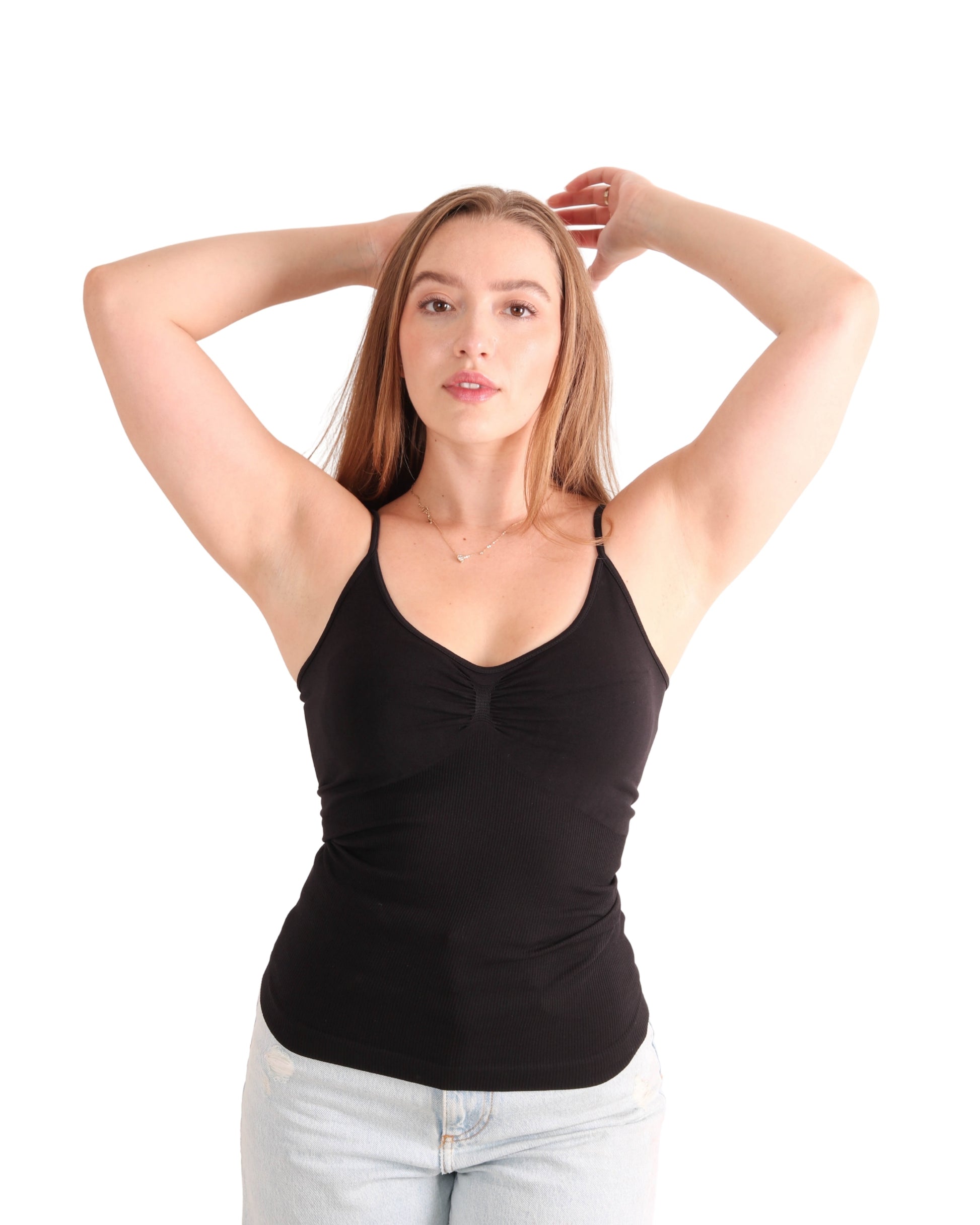 Blusa de tirantes ligera y cómoda, con ajuste favorecedor. Su diseño sin costuras laterales ofrece mayor confort y un acabado limpio. Integra retención en el busto para moldear la silueta y tejido acanalado tipo fajita que se adapta al cuerpo con firmeza y suavidad. Ideal para usar sola o como base.